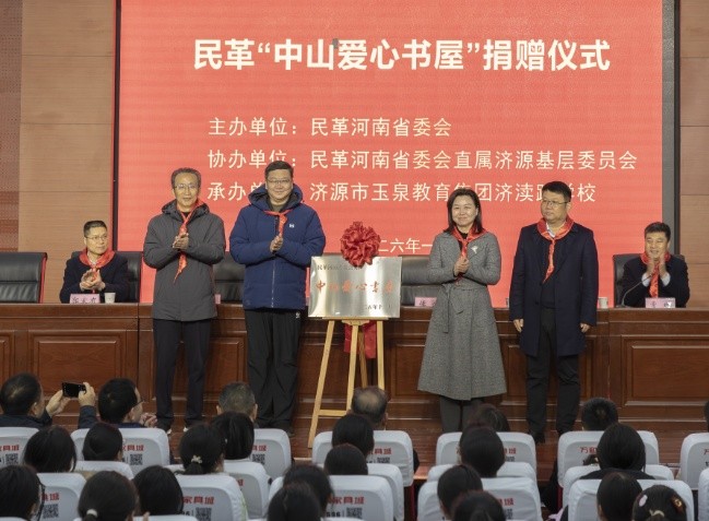 1月6日,民革“中山爱心书屋”捐赠仪式在济源市玉泉教育集团济渎路学校举行。民革河南省委会专职副主委史展翔,济源示范区党工委委员、统战部部长、副市长侯波,济源示范区政协工委副主任、市政协副主席、民革河南省委会直属济源基层委员会主委苗圃出席捐赠仪式。